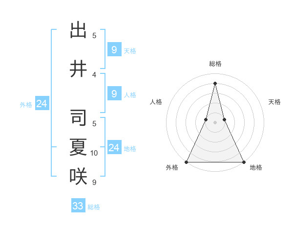 出井 司夏咲さんを姓名の画数から五運を鑑定