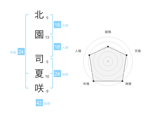 北園 司夏咲さんの天格は18画の4点!