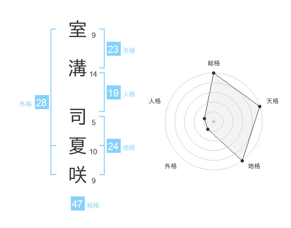 室溝 司夏咲さんを姓名の画数から五運を鑑定