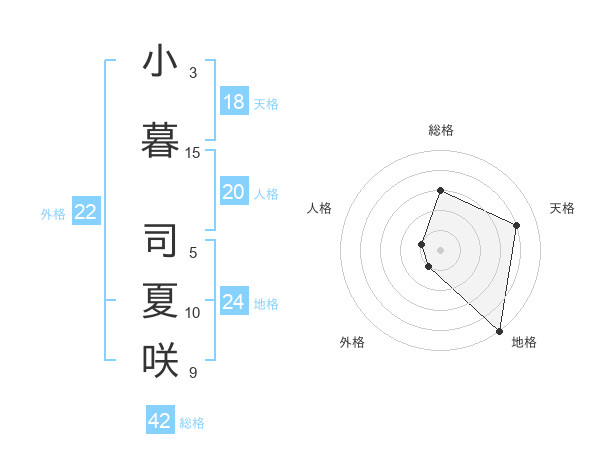 小暮 司夏咲さんの天格は18画の4点!
