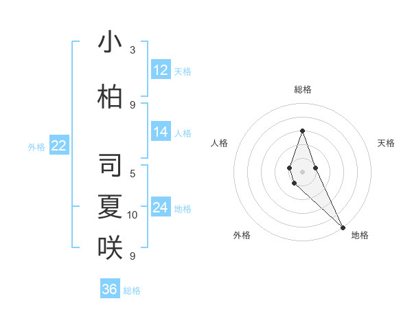 小柏 司夏咲さんを姓名の画数から五運を鑑定