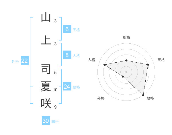 山上 司夏咲さんを姓名の画数から五運を鑑定