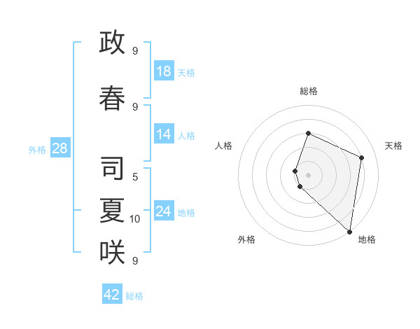 政春 司夏咲さんの天格は18画の4点!