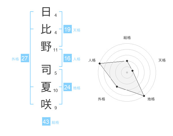 日比野 司夏咲さんの総格は43画の2点!