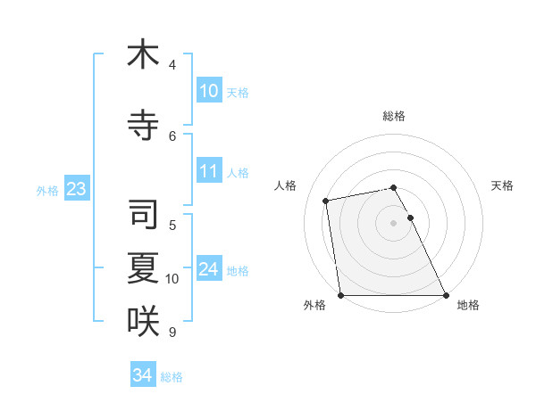 木寺 司夏咲さんの総格は34画の2点!
