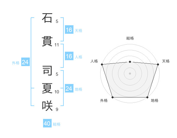 石貫 司夏咲さんの天格は16画の5点!