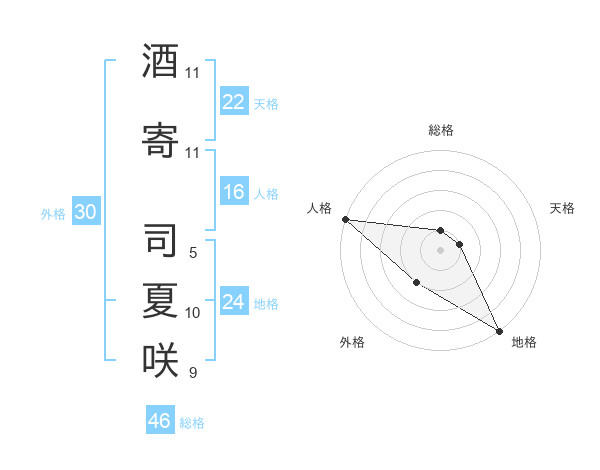 酒寄 司夏咲さんを姓名の画数から五運を鑑定