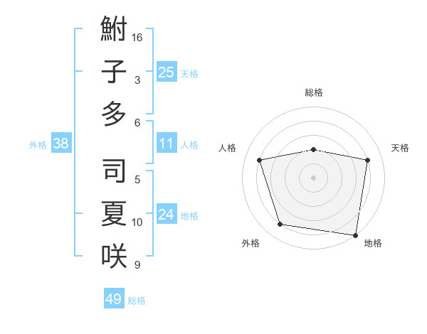 鮒子多 司夏咲さんを姓名の画数から五運を鑑定