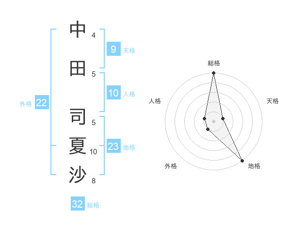 中田 司夏沙さんを姓名の画数から五運を鑑定