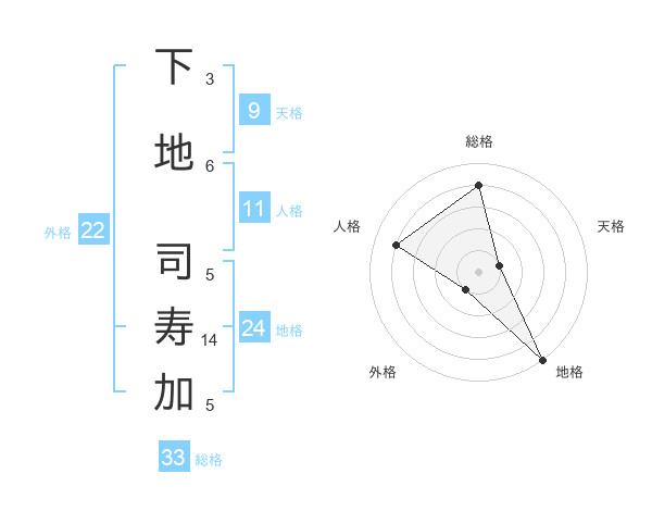 下地 司寿加さんの総格は33画の4点!