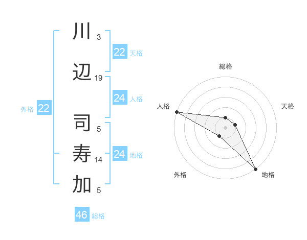 川辺 司寿加さんを姓名の画数から五運を鑑定