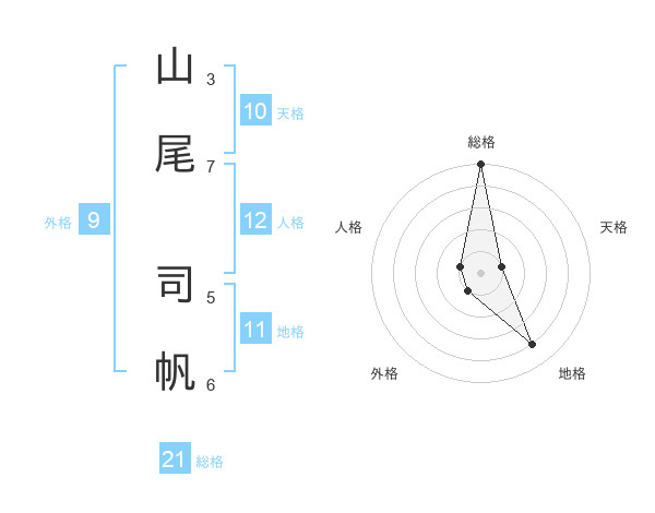 山尾 司帆さんの総格は21画の5点!