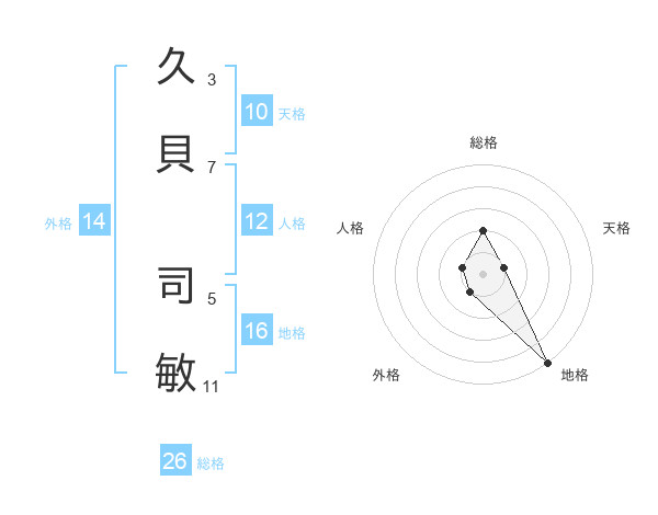 久貝 司敏さんの総格は26画の2点!