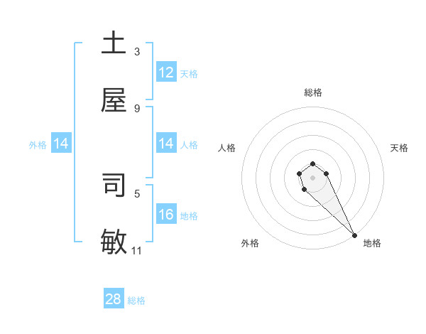 土屋 司敏さんを姓名の画数から五運を鑑定