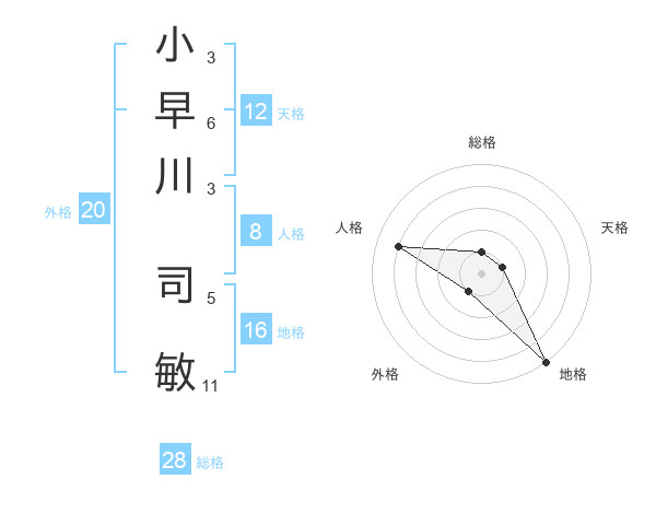 小早川 司敏さんの総格は28画の1点!