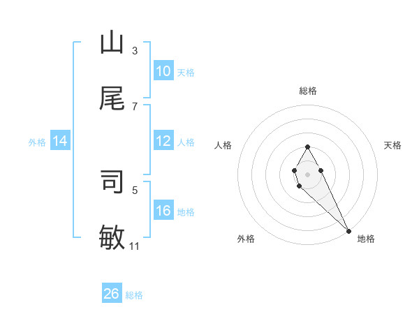 山尾 司敏さんの総格は26画の2点!