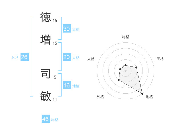 徳増 司敏さんを姓名の画数から五運を鑑定