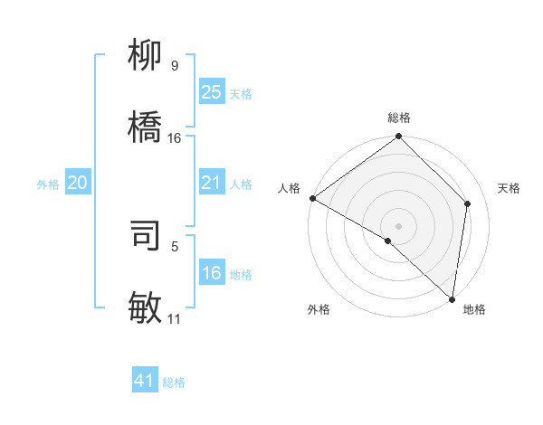 柳橋 司敏さんの人格は21画の5点!