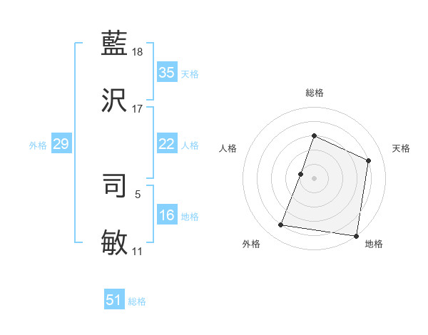 藍沢 司敏さんの総格は51画の3点!