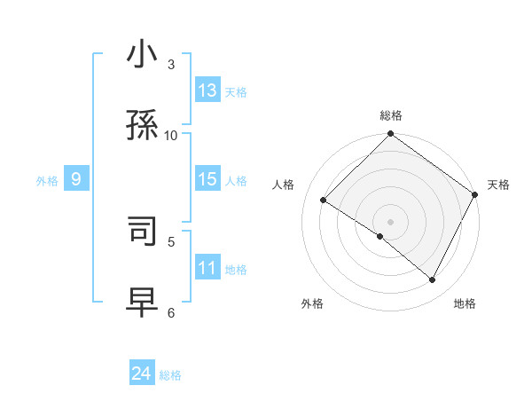 小孫 司早さんの総格は24画の5点!