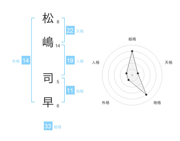 松嶋 司早さんを姓名の画数から五運を鑑定
