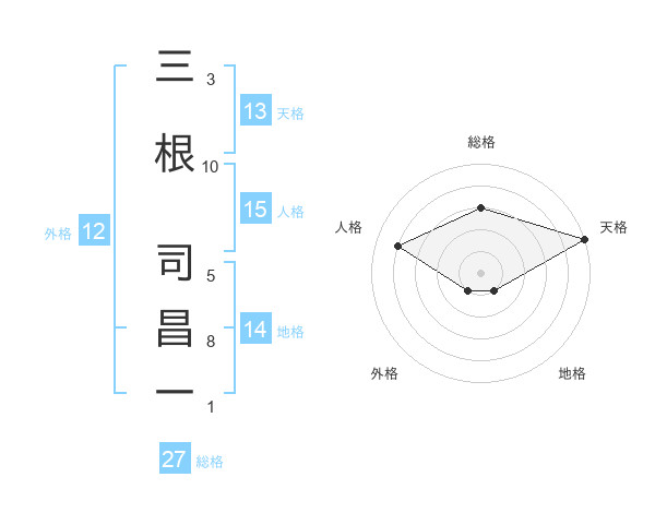 三根 司昌一さんを姓名の画数から五運を鑑定