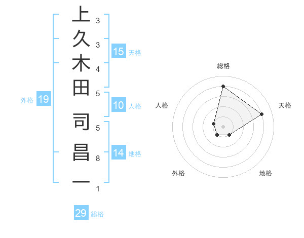 上久木田 司昌一さんを姓名の画数から五運を鑑定