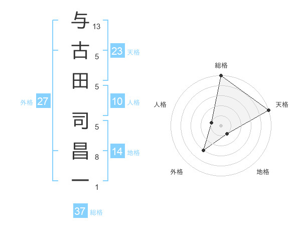 与古田 司昌一さんを姓名の画数から五運を鑑定