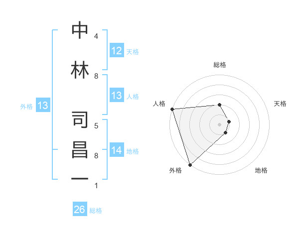 中林 司昌一さんを姓名の画数から五運を鑑定