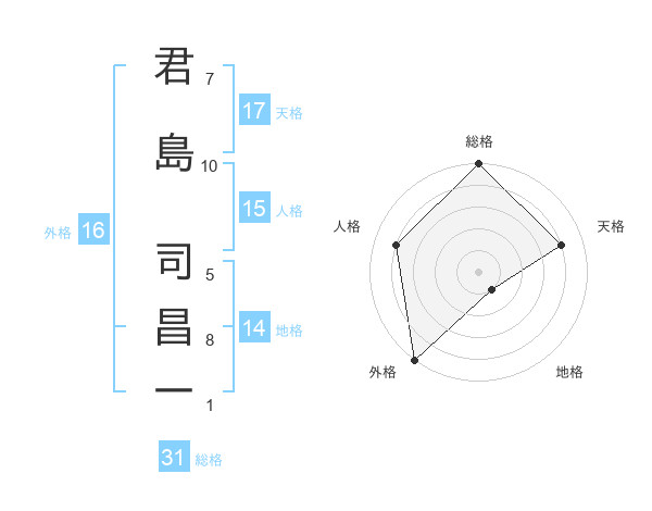 君島 司昌一さんを姓名の画数から五運を鑑定