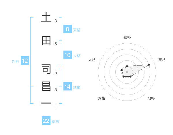 土田 司昌一さんを姓名の画数から五運を鑑定