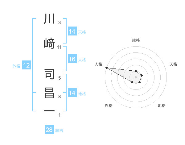 川﨑 司昌一さんを姓名の画数から五運を鑑定