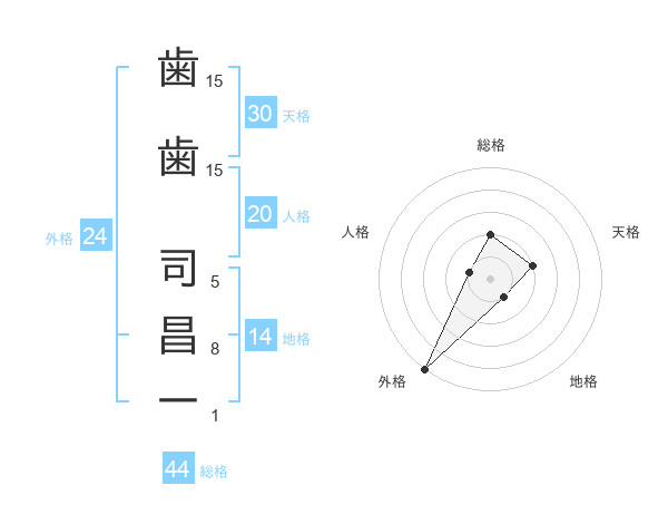 歯歯 司昌一さんを姓名の画数から五運を鑑定