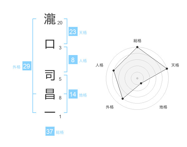 瀧口 司昌一さんを姓名の画数から五運を鑑定