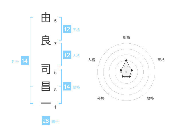 由良 司昌一さんを姓名の画数から五運を鑑定