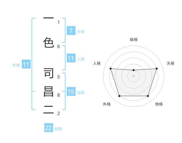 一色 司昌二さんの総格は22画の1点!