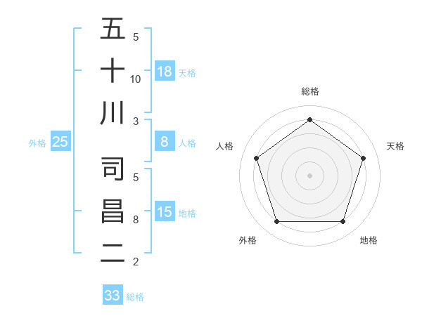 五十川 司昌二さんを姓名の画数から五運を鑑定