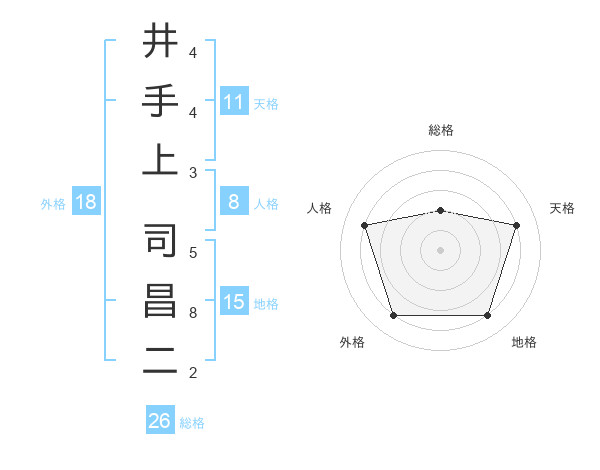 井手上 司昌二さんの総格は26画の2点!
