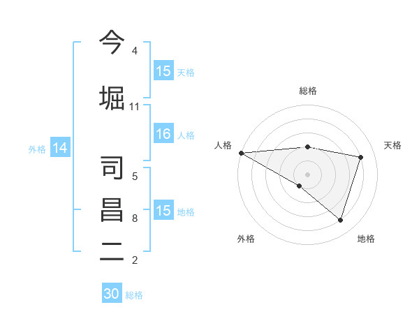 今堀 司昌二さんを姓名の画数から五運を鑑定