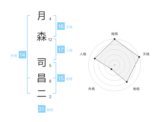 月森 司昌二さんの総格は31画の5点!