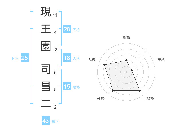 現王園 司昌二さんを姓名の画数から五運を鑑定