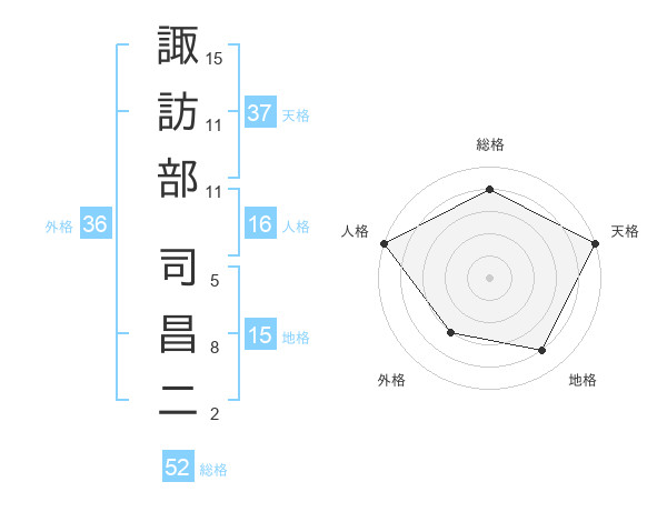 諏訪部 司昌二さんを姓名の画数から五運を鑑定