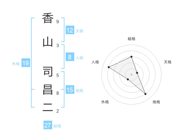 香山 司昌二さんを姓名の画数から五運を鑑定