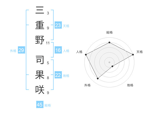 三重野 司果咲さんを姓名の画数から五運を鑑定