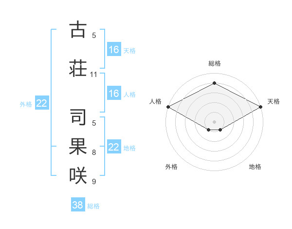 古荘 司果咲さんを姓名の画数から五運を鑑定