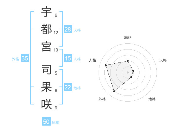 宇都宮 司果咲さんを姓名の画数から五運を鑑定