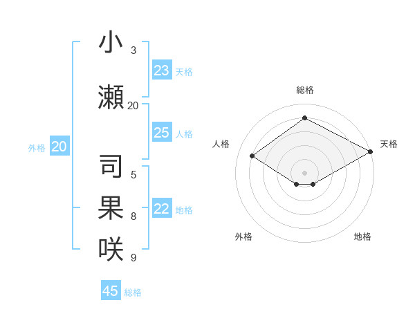 小瀬 司果咲さんを姓名の画数から五運を鑑定