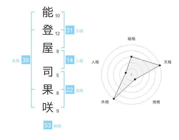 能登屋 司果咲さんの総格は53画の3点!