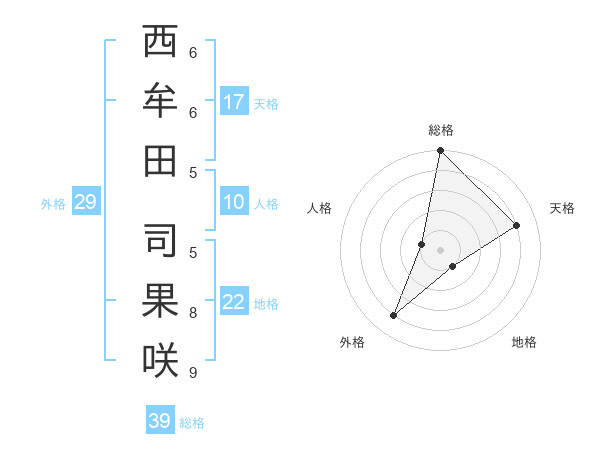 西牟田 司果咲さんの総格は39画の5点!