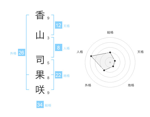 香山 司果咲さんを姓名の画数から五運を鑑定